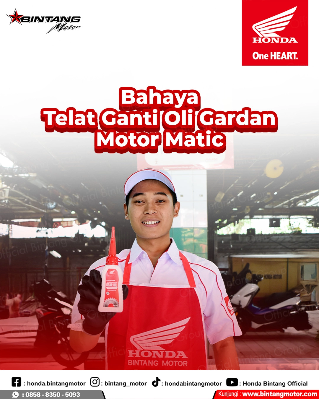 Gunakan Oli AHM Original: Pastikan selalu menggunakan oli transmisi resmi dari Astra Honda Motor yang tersedia di Bintang Motor untuk menjamin viskositas yang sesuai dengan spesifikasi motor matic Honda (seperti BeAT, Vario, atau PCX).